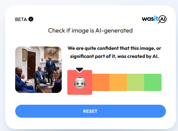 Résultats des analyses de Was it Ai capturées par Eleza Fact.