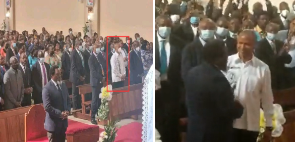 De Gauche : Moïse Katumbi encadré en rouge sur l’image virale ; à droite : Moïse Katumbi saluant Joseph Kabila avant de prendre place.