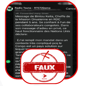 Dans le cadre de ses vérifications, Eleza Fact a contacté via WhatsApp Ndeye Khady LO, porte-parole de la MONUSCO, afin d’obtenir des précisions sur la véracité des propos attribués à l’ancienne Cheffe de la Mission, Bintou Keita.