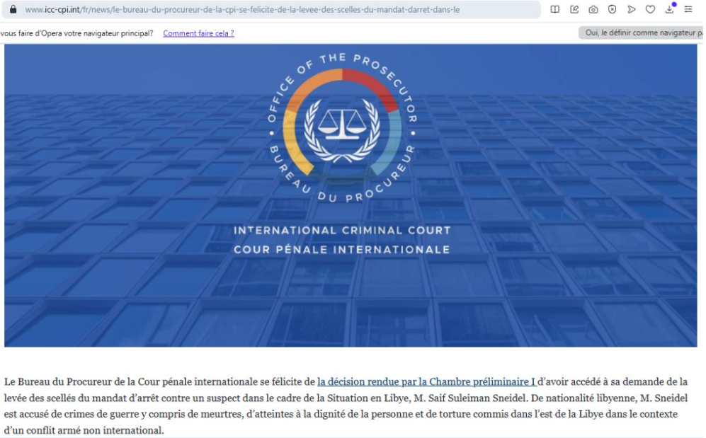À ce niveau, Eleza Fact a tapé dans le moteur de recherche Google pour obtenir les informations sur les mandats d’arrêt en cours au niveau de la CPI. Le dernier (archivé ici) en date concerne la Libye et engage le Bureau du Procureur de la CPI qui se félicite pour la levée des scellés du mandat d’arrêt dans le cadre de la Situation en Libye.