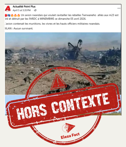Les images diffusées sur les réseaux sociaux ne constituent pas une preuve de la destruction d’un avion rwandais à Minembwe. L’analyse montre qu’il s’agit d’images anciennes ou réutilisées hors de leur contexte initial. La vérification menée par Eleza Fact, notamment en contactant des témoins sur place, et en recourant à une recherche inversée d’images, établit que rien de factuel ne permet de confirmer l’existence de cet événement en RDC en avril 2026.
