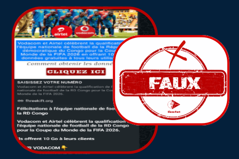 De son côté, le service client de Vodacom a également démenti l’information et a appelé ses clients à se fier uniquement à ses canaux officiels (Facebook, X, et son site web). L’entreprise précise : « Non, ce message est faux. Nous ne proposons aucun bonus de 10 Go pour célébrer la qualification des Léopards. Les liens qui circulent ne proviennent pas de nos services : il s’agit de contenus frauduleux conçus pour tromper les utilisateurs et collecter leurs informations. Pour toute annonce officielle, nous invitons nos clients à consulter exclusivement nos pages et plateformes officielles. »