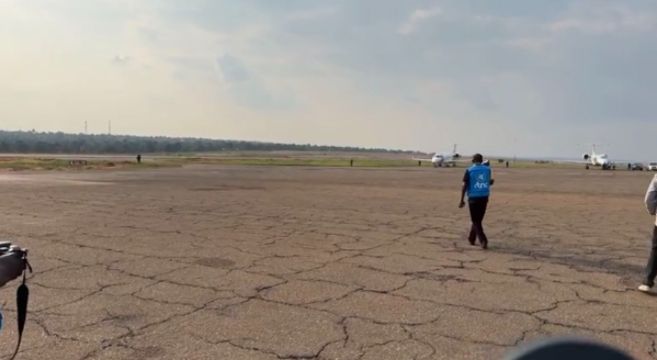 Comme le démontre cette vidéo (archivée ici) de son arrivée mise en ligne sur la page Mbujimayi ma ville, la piste d'atterrissage ne ressemble en rien à celle présentée sur les images sous examen.