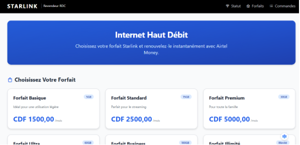 Depuis plusieurs semaines, des publications relayées sur Facebook en République démocratique du Congo affirment que Starlink proposerait des forfaits internet à très bas prix, notamment 1 500 FC pour 5 Go par mois ou 5 000 FC pour 50 Go, avec une activation possible via Airtel Money.
