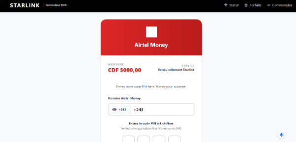 Les prétendus forfaits Starlink à 1 500 FC ou 5 000 FC activables via Facebook, WhatsApp et Airtel Money sont faux. Il s’agit d’une arnaque reposant sur l’usurpation du nom Starlink et visant à soutirer de l’argent aux internautes.