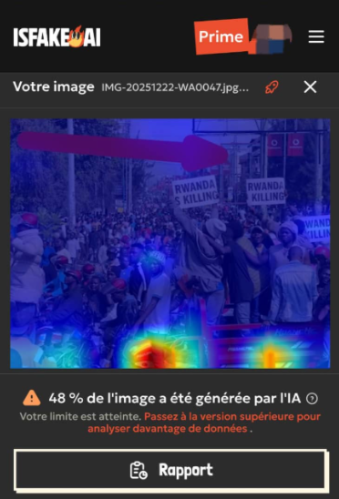 L’outil IsFake.ai conclut, de son côté, que 48 % du visuel présente des caractéristiques typiques d’images générées par IA.