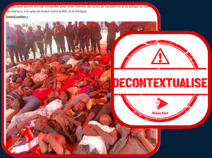 La photo en question était assortie d’une légende catégorique : « Plusieurs jeunes ont été interpellés pour avoir commis des actes de vandalisme et de pillage au stade des Martyrs, à la suite du match entre la RDC et le Sénégal ».