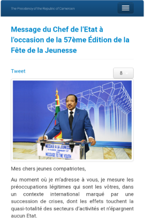 Capture d'écran de l'image de la vidéo authentique publiée sur le site de la présidence camerounaise le 10 février 2023 réalisée par Eleza Fact