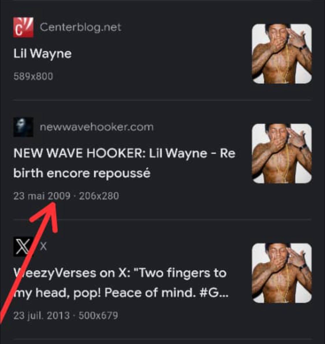 Légende : Capture d’écran montrant l’ancienneté de la photo de Lil Wayne