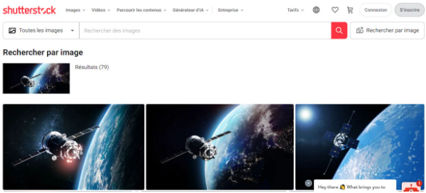Capture du résultat des recherches sur le site shutterstock